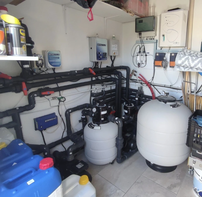 Le local technique: fuite au niveau de la pompe, du filtre ou des vannes